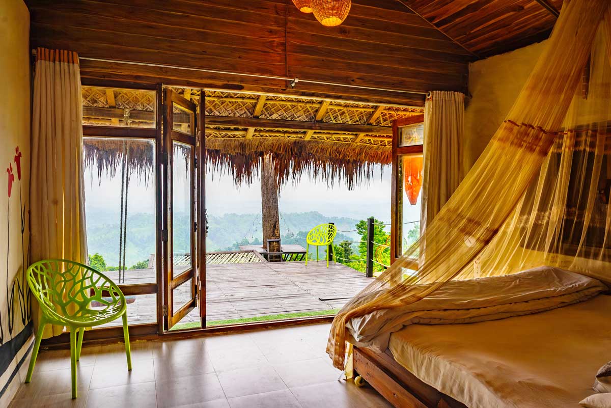 Hoimonti cottage comprises 1 couple Bed and 1 drawer bed, 1 Bedside Table, 1 stand fan, 1 infinity balcony with attached bed hammock. The room is furnished with a bookshelf and 1 large mirror. Our modern-fittings spacious bathroom is equipped with standard toiletries as well as all the amenities. A Complimentary Bottle of water, Breakfast, Morning tea, and access to the Infinity swimming pool are provided during your stay. You will get a full infinity hill view of Mizoram from inside and outside the cottage.